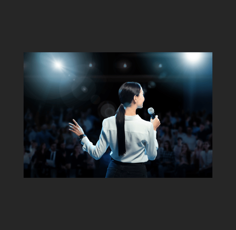 While you are walking through the space, notice the lighting, where the spotlights are focused. Are there are any dark spots or shadows? If necessary, ask the AV person or a banquet set-up person to re-focus spotlights so the stage is better lit.